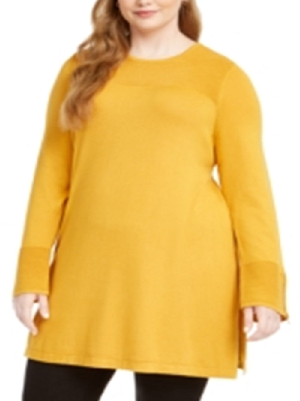 Detalhes sofisticados canelados horizontais e punhos com zíper realçam a elegância deste suéter túnica plus size | com mangas longas esvoaçantes para maior cobertura | da Alfani