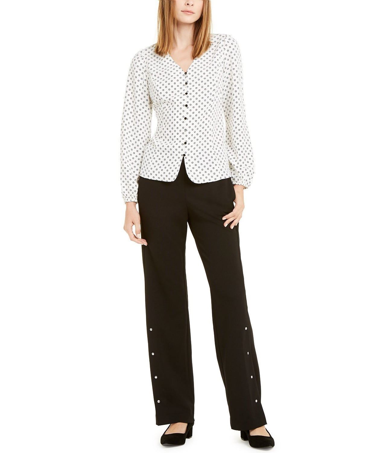 Calça feminina Alfani com rebites e pernas largas, preta, tamanho grande
