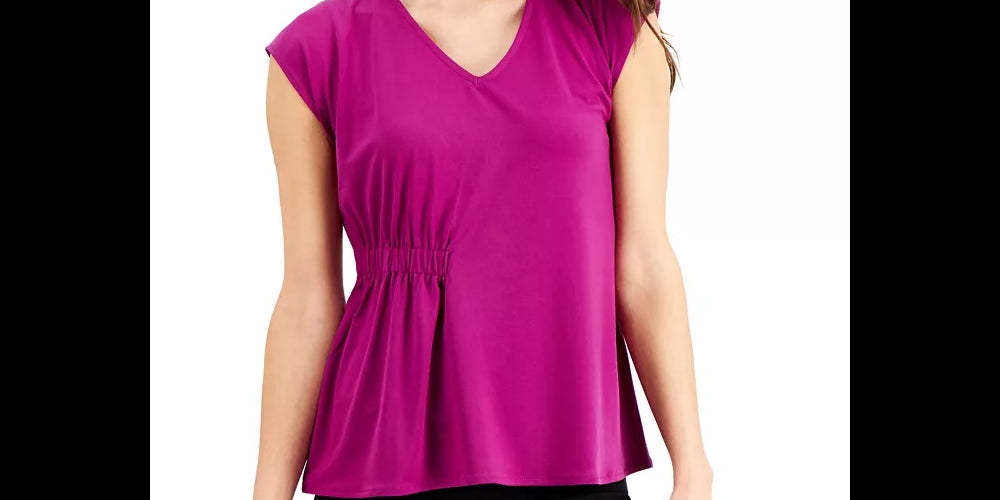 Aprox. 26-3/8" de comprimento | Decote em V | Franzido na lateral | Poliéster/elastano | Lavável à máquina | Importado