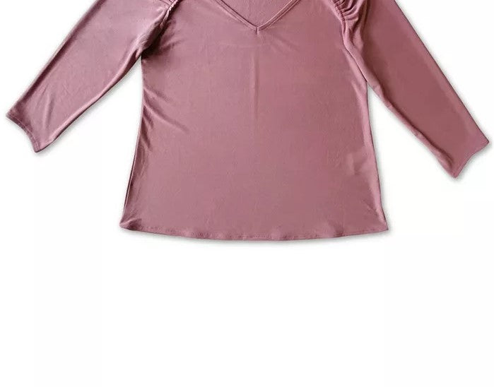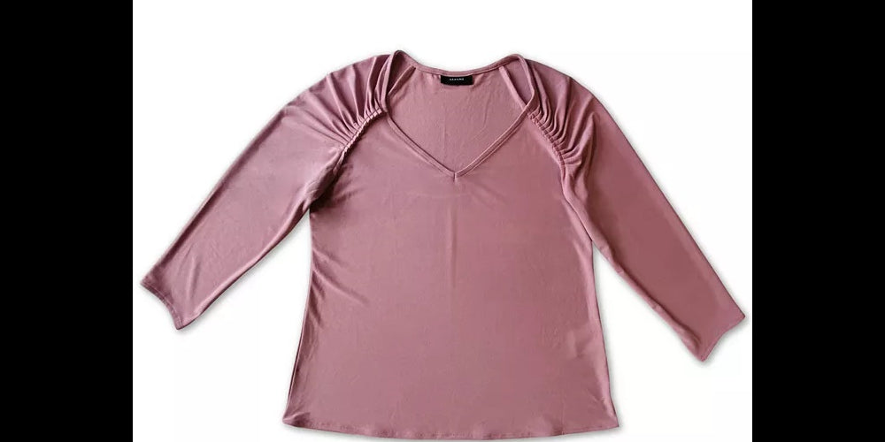 Aprox. 61 cm de comprimento | Devido ao tamanho generoso, sugerimos um tamanho menor para um ajuste perfeito | Decote em V | Mangas longas raglan com franzido e acabamento trançado | Poliéster/elastano | Lavável à máquina