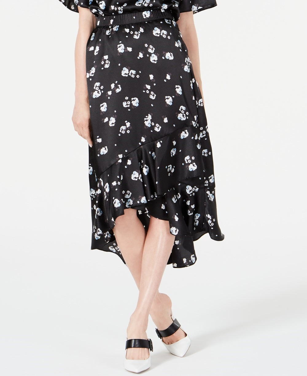 Comprimento abaixo do joelho: aprox. 35"; Silhueta midi | Fecho de zíper lateral | Babados na bainha; design frontal cruzado alto-baixo | Sem forro