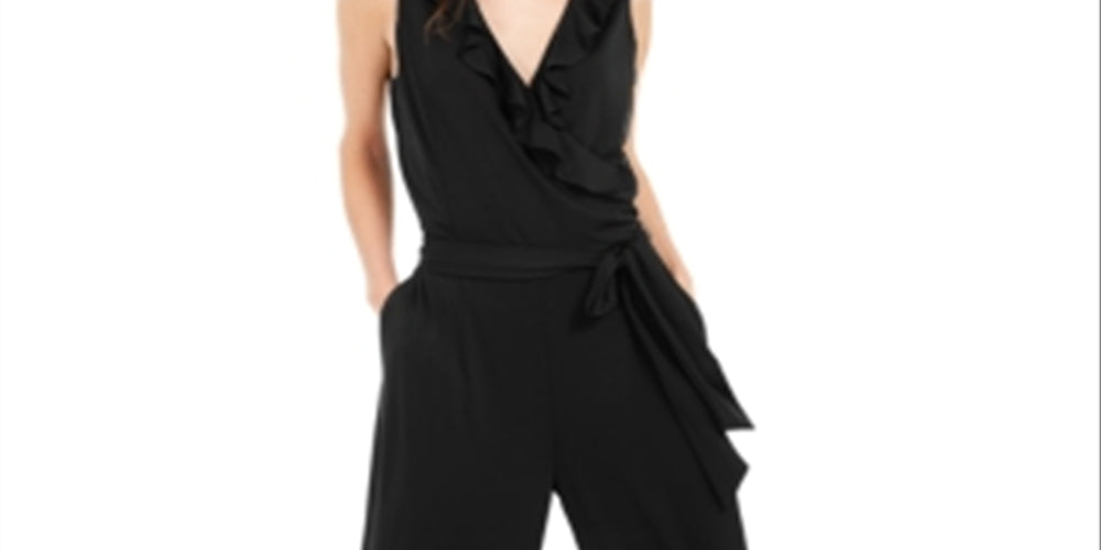 Alfani eleva seu visual a um nível superior com este macacão pequeno estilizado com lindos babados e bolsos inteligentes na costura