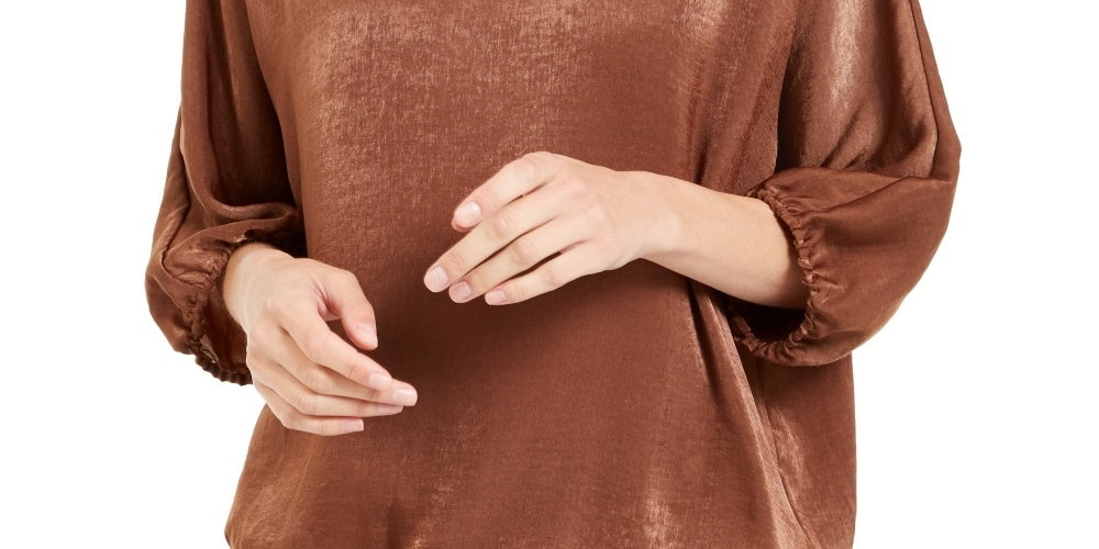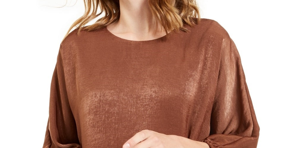 Blusa feminina Alfani de cetim com manga dolman e bolhas, marrom, tamanho pequeno