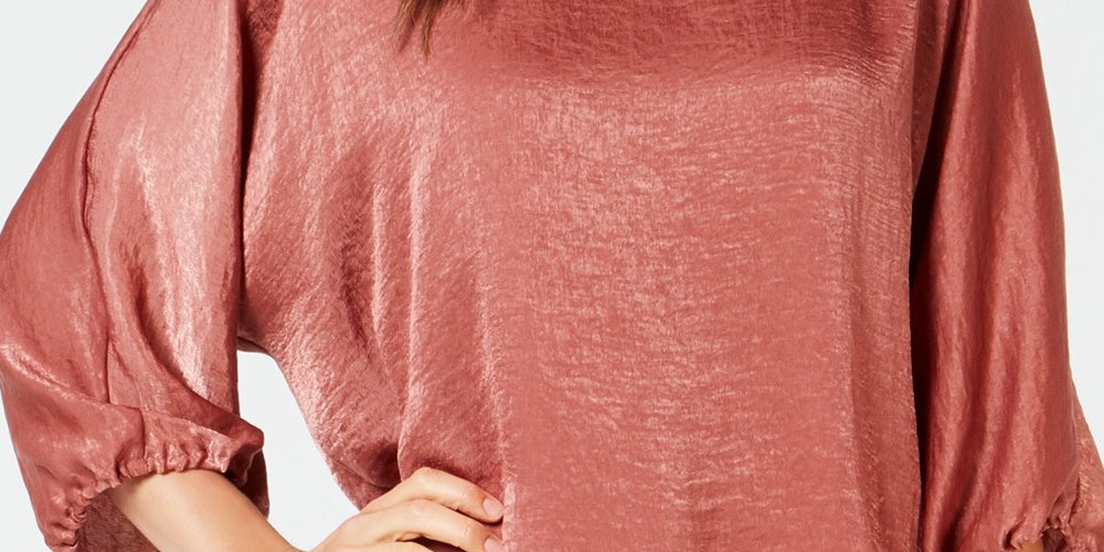 A altura aproximada da modelo é 1,78 m e ela veste tamanho P | Caimento fácil; comprimento no quadril | Decote canoa | Bainha com bolhas; tecido texturizado de cetim lavado | Mangas dolman com punhos de bolhas | Poliéster