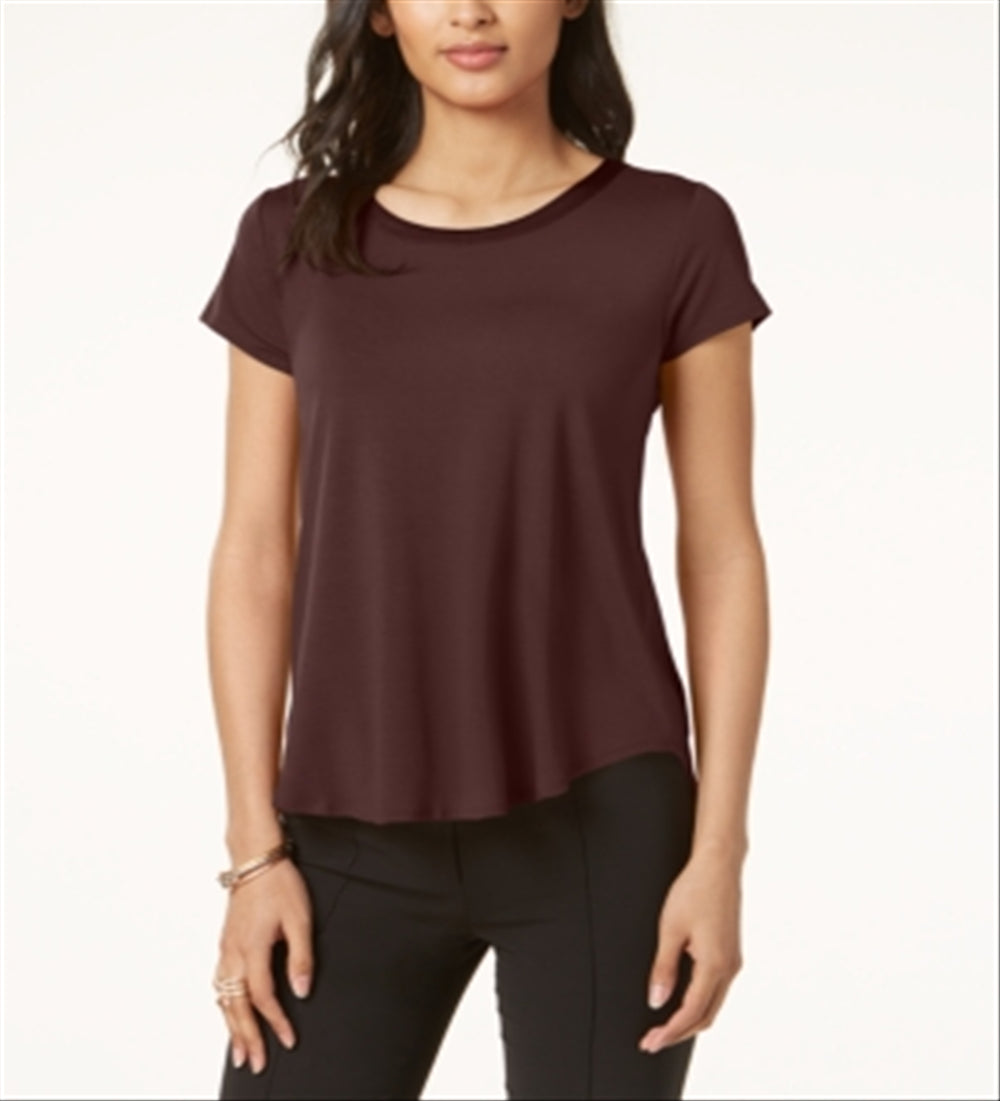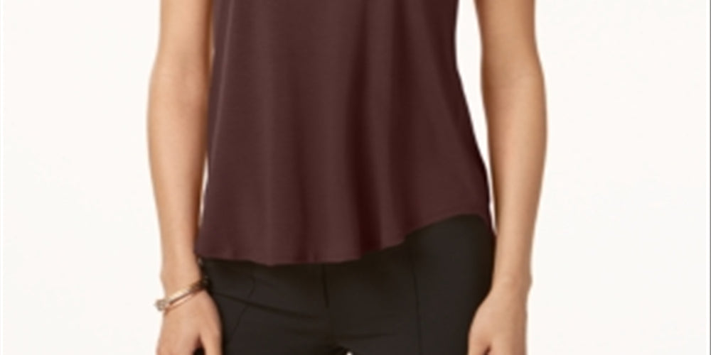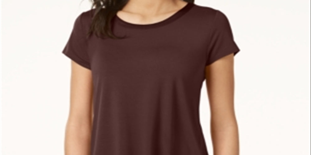 Camiseta feminina Alfani com acabamento em cetim, comprimento alto e baixo, tamanho pequeno, marrom