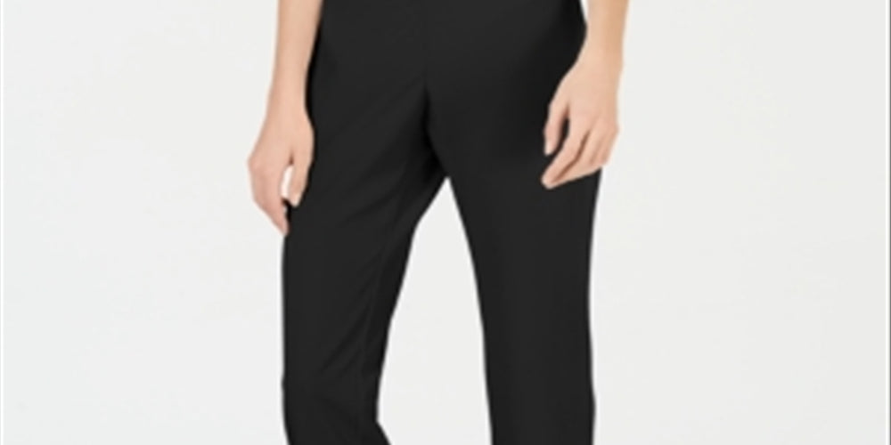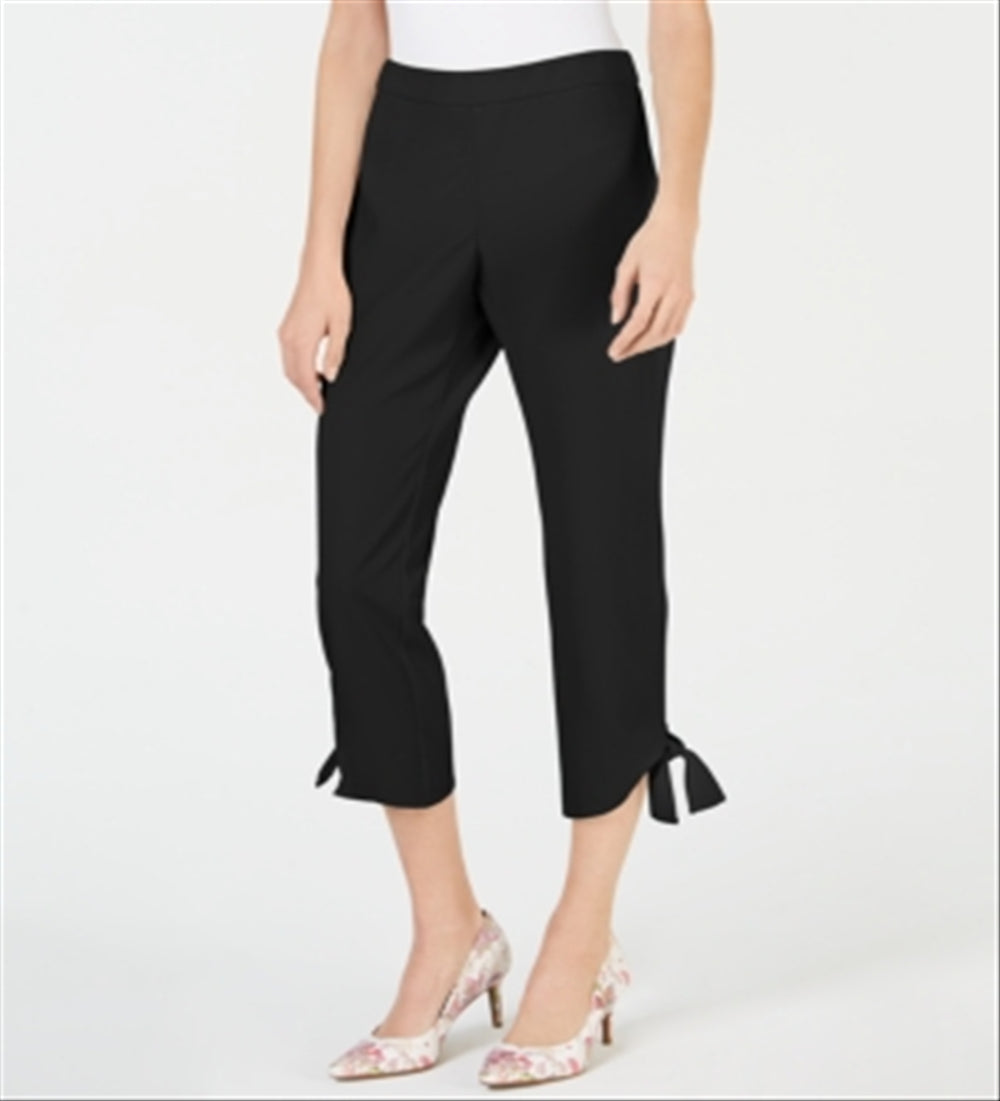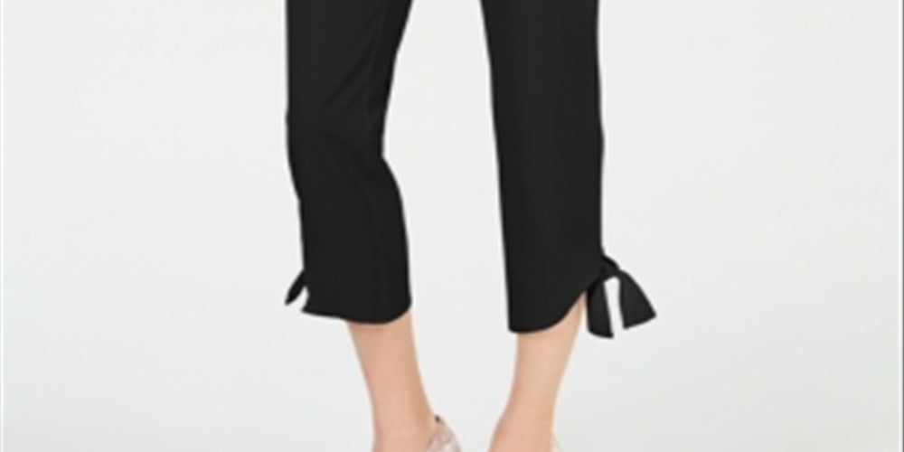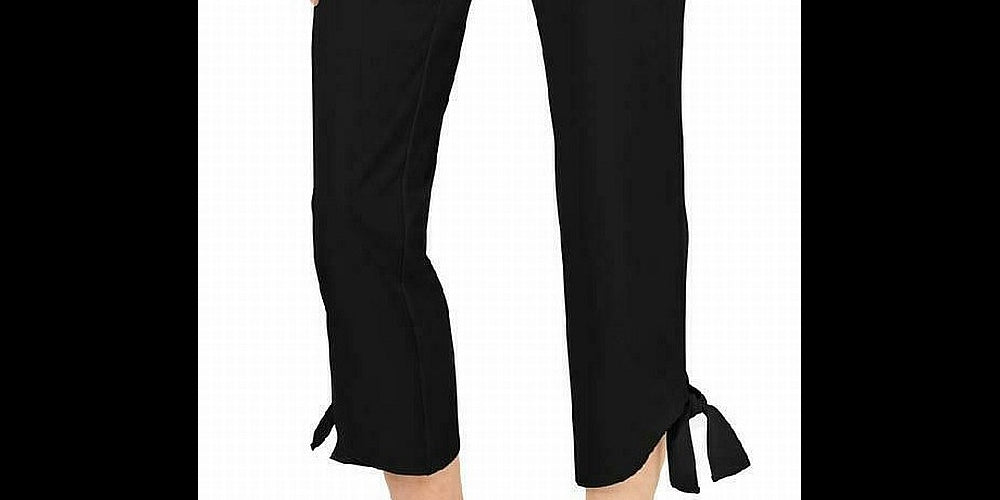Calça feminina alfani pequena com bainha amarrada, curta e justa no tornozelo, preta