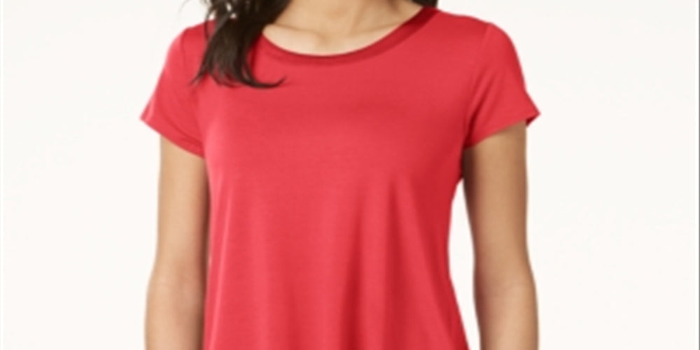 Blusa feminina Alfani de seda lisa, manga curta, gola alta, tamanho pequeno, vermelha