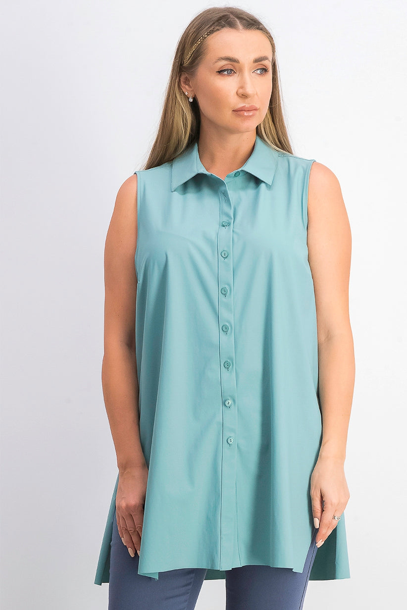 Túnica feminina Alfani sem mangas de malha com botões na frente, verde, tamanho grande