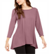 Blusa trapézio feminina Alfani lisa, manga comprida, gola redonda, rosa, tamanho grande