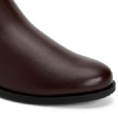Botas de bico redondo com zíper lateral completo | Detalhe de tira traseira com ferragens de anel O lateral | Cabedal sintético; sola sintética | Importado