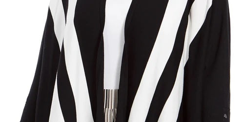 Cardigan feminino Alfani listrado com frente aberta, preto, tamanho pequeno, extragrande