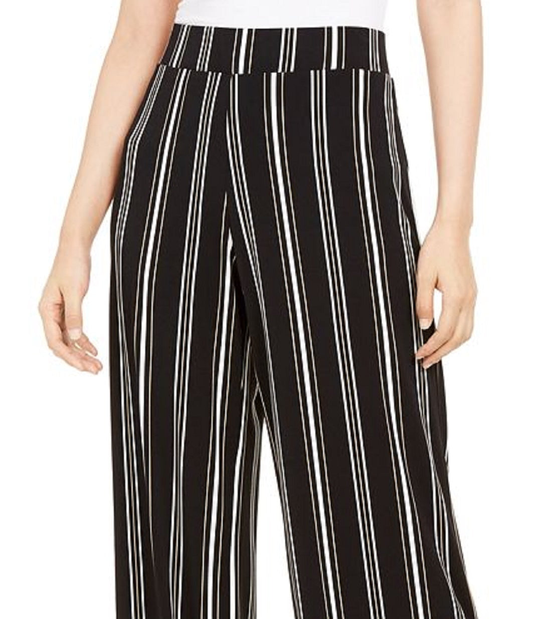 Calça feminina listrada Alfani, preta, tamanho pequeno e pequeno