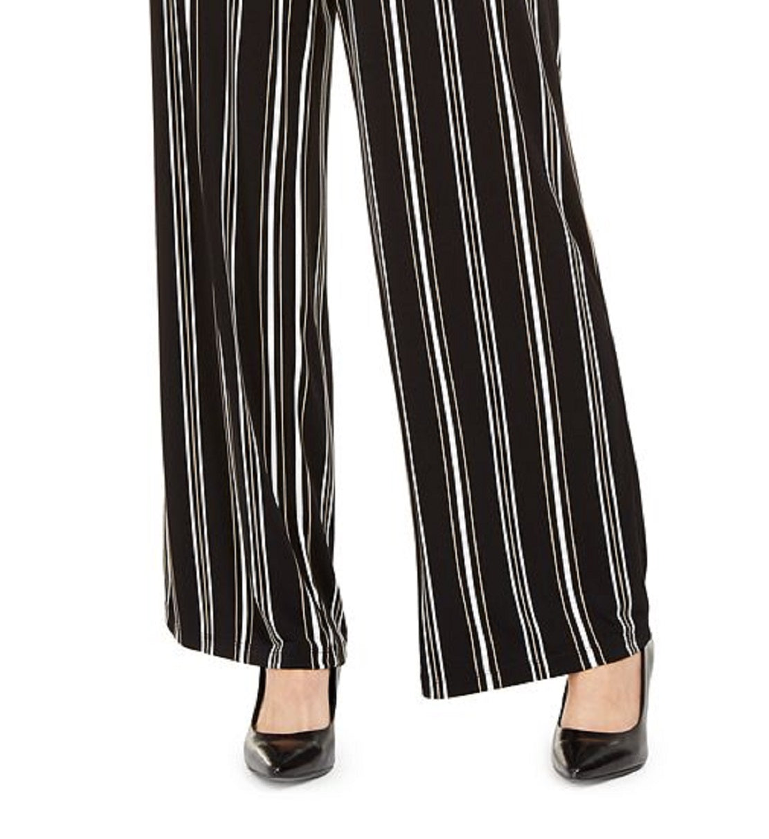 Com design dramático e pernas largas e um padrão listrado chique, esta calça petite da Alfani apresenta um estilo pull-on para vestir sem esforço. | Costura interna aprox.; 28 | Gancho frontal aprox. 10-1/2; gancho traseiro aprox. 14 | Projetada para se ajustar e valorizar pessoas de 1,62 m ou menos | Estilo pull-on |