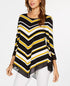 Blusa listrada feminina Alfani com bainha em V, amarela, tamanho pequeno e pequeno