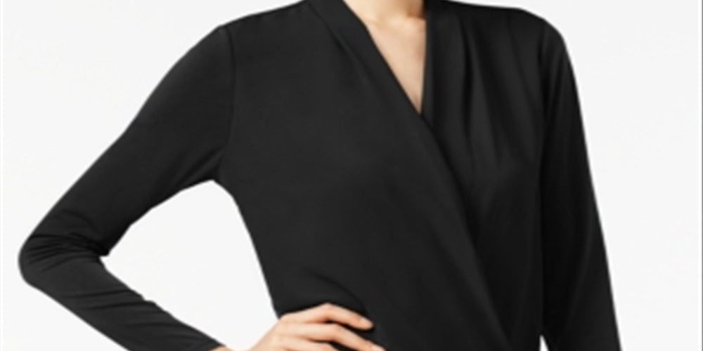 O estilo polido máximo é definido neste top elegante da alfani | finalizado com um decote sobrepeliz drapeado e mangas compridas