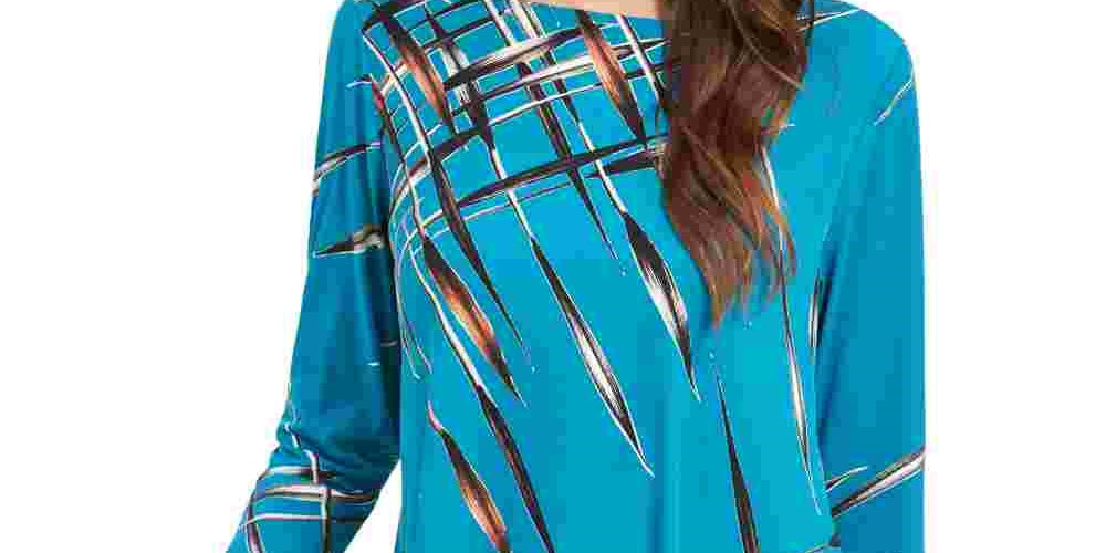 Abaixo do quadril | Projetado para se ajustar e valorizar pessoas de 1,62 m ou menos | Decote redondo | Mangas 3/4 | Poliéster/elastano