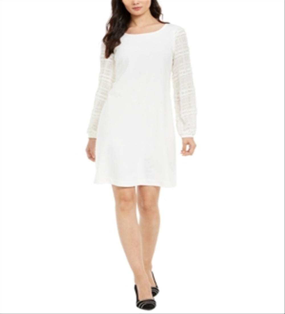 Vestido feminino Alfani com manga texturizada e decote em V, tamanho XX-G, branco