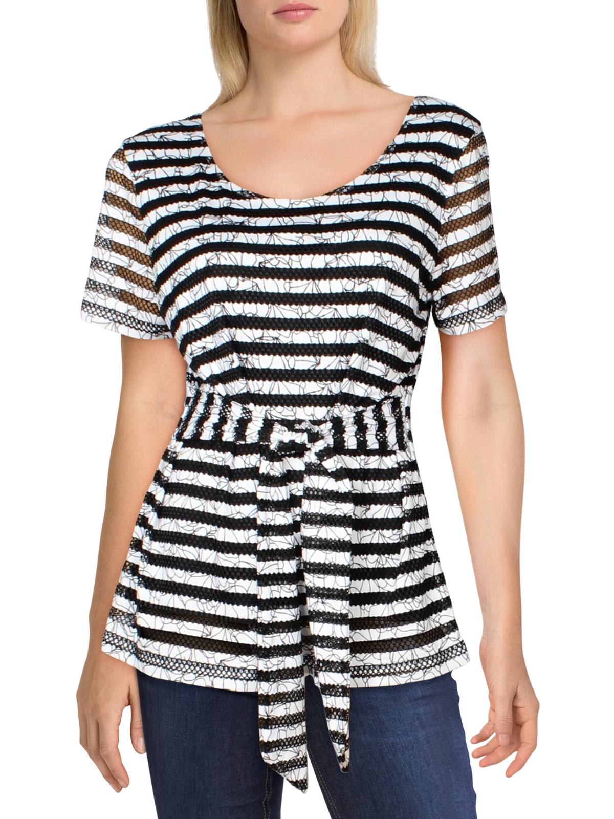 Top feminino texturizado com listras e amarração na cintura Alfani, preto, tamanho médio