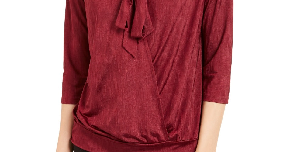 Blusa feminina Alfani com amarração no pescoço, tamanho vinho, tamanho PL