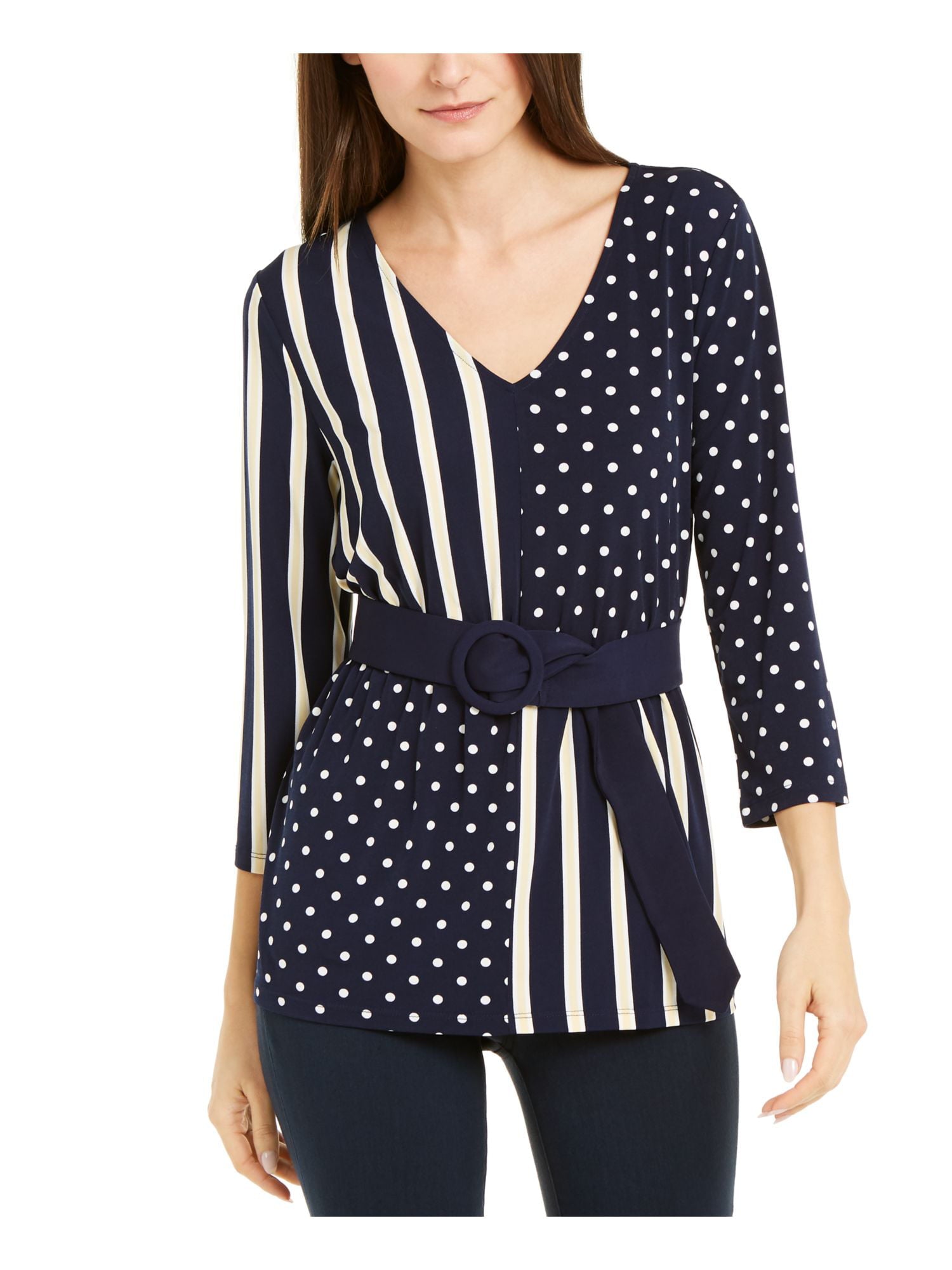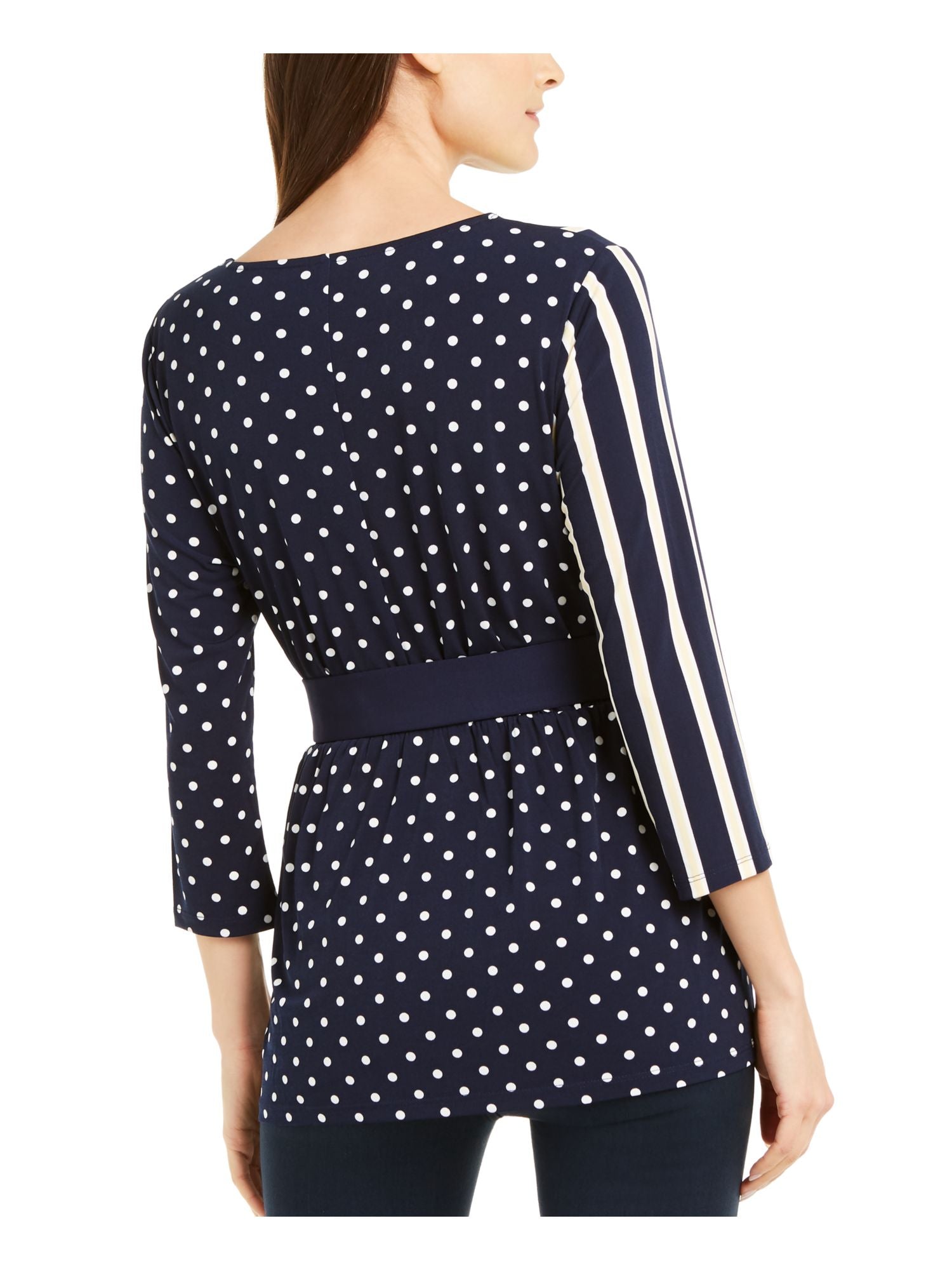 Blusa feminina Alfani com estampa de bolinhas e manga 3/4, azul, tamanho pequeno e festa