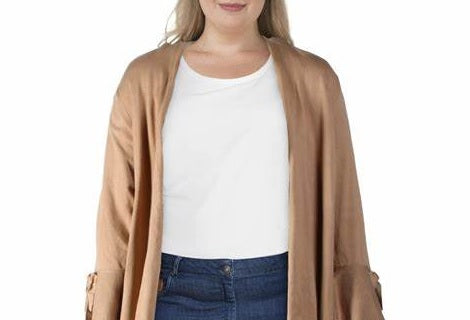 Cardigan feminino Alfani com mangas amarradas, dourado, tamanho XX-G