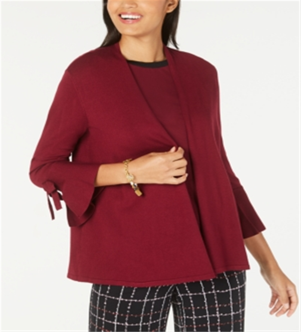 Cardigan feminino Alfani com manga amarrada, violeta e vermelho, tamanho pequeno G