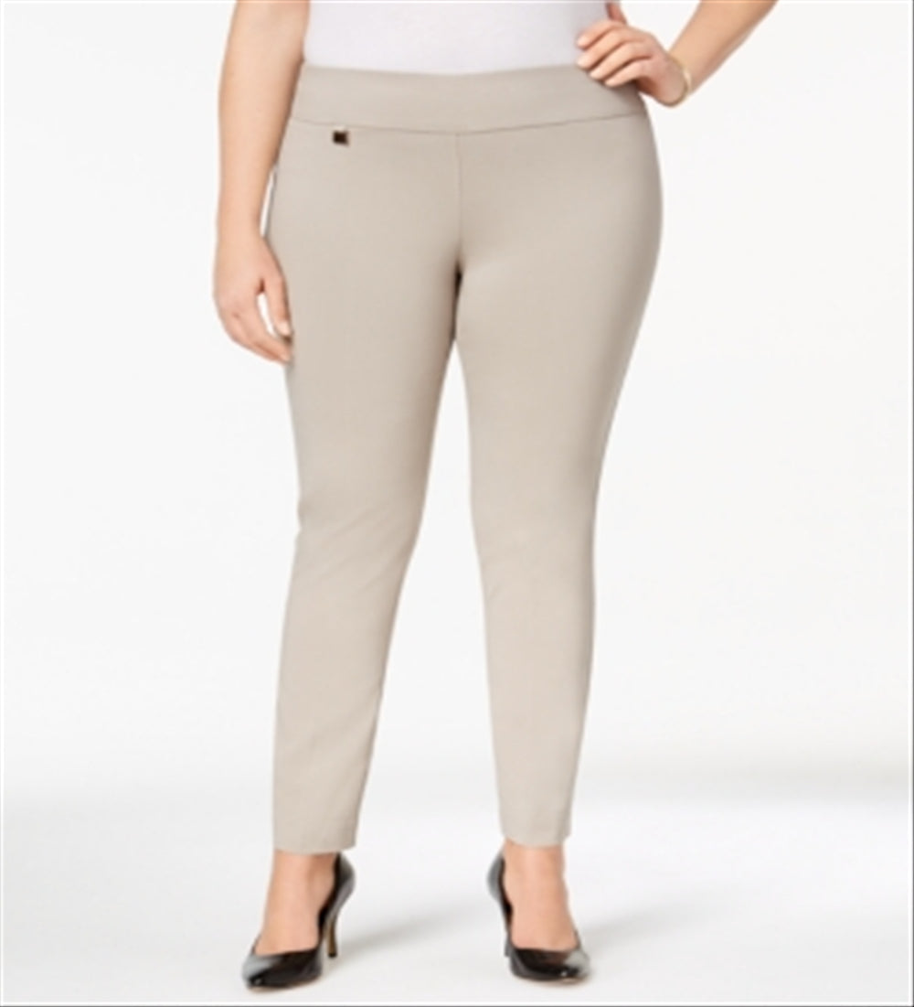 As calças slim plus size da Alfa são uma peça essencial no guarda-roupa de trabalho | com modelagem pull-on e controle de barriga para um ajuste confortável | elegante. | Encontre o ajuste perfeito. Clique no nosso vídeo de modelagem na foto hoje mesmo! | O painel de controle de barriga afina a cintura e mantém o formato. | Costura interna aproximada: 76 cm (L); 71 cm (WP) | Cintura elástica; modelagem pull-on