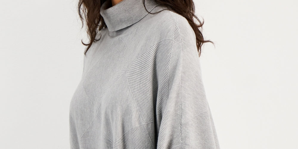 Sofisticação simples | Costuras em diamante dão um toque especial a este look da Alfani | um suéter de gola alta com mangas poncho esvoaçantes | (Liquidação)