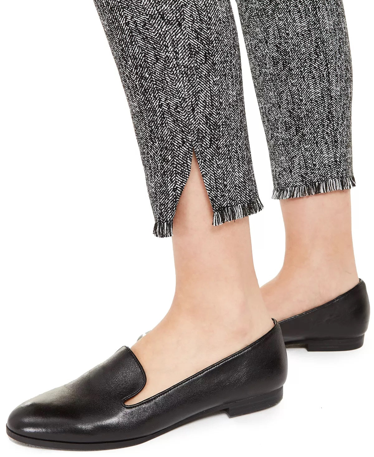 Costura interna aprox.; 26 | Altura aprox.; 10 | Estilo pull-on; cós confortável | Detalhe da bainha Bainha desfiada com abertura lateral