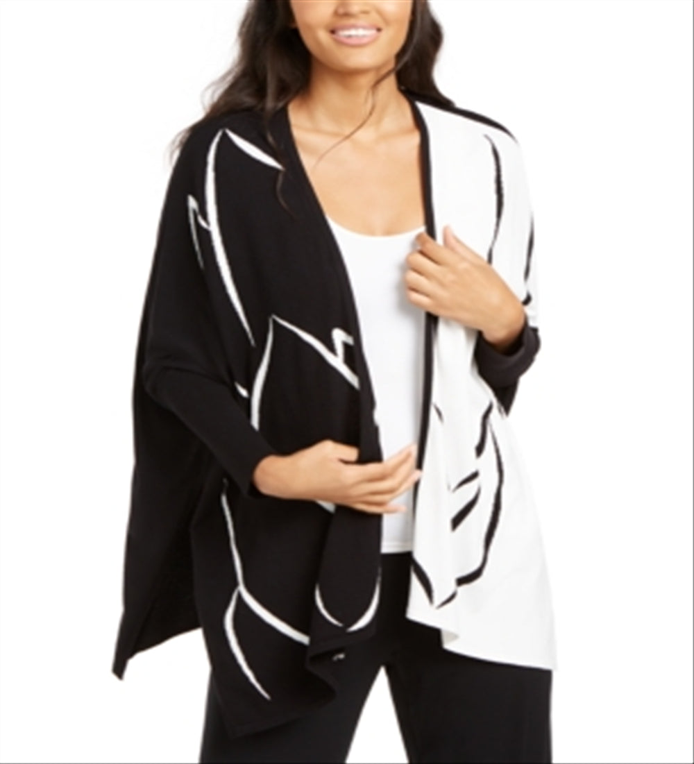 Alfani Cardigan Poncho Feminino Bicolor Aberto Frente Preto Tamanho XX-G