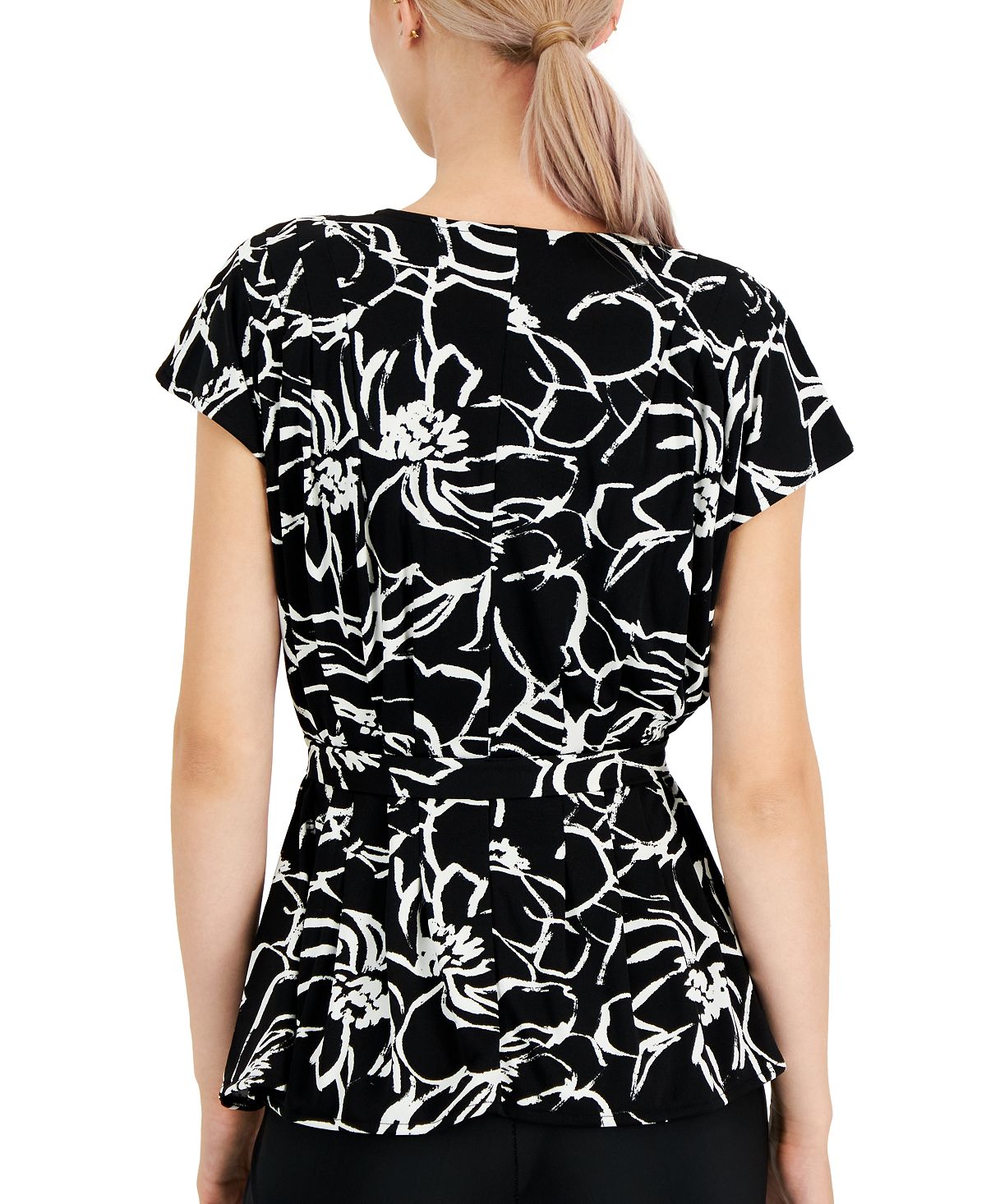 Realce seu corpo com este top versátil da Alfani| Pregas na cintura e um laço na frente ajudam a definir sua cintura|