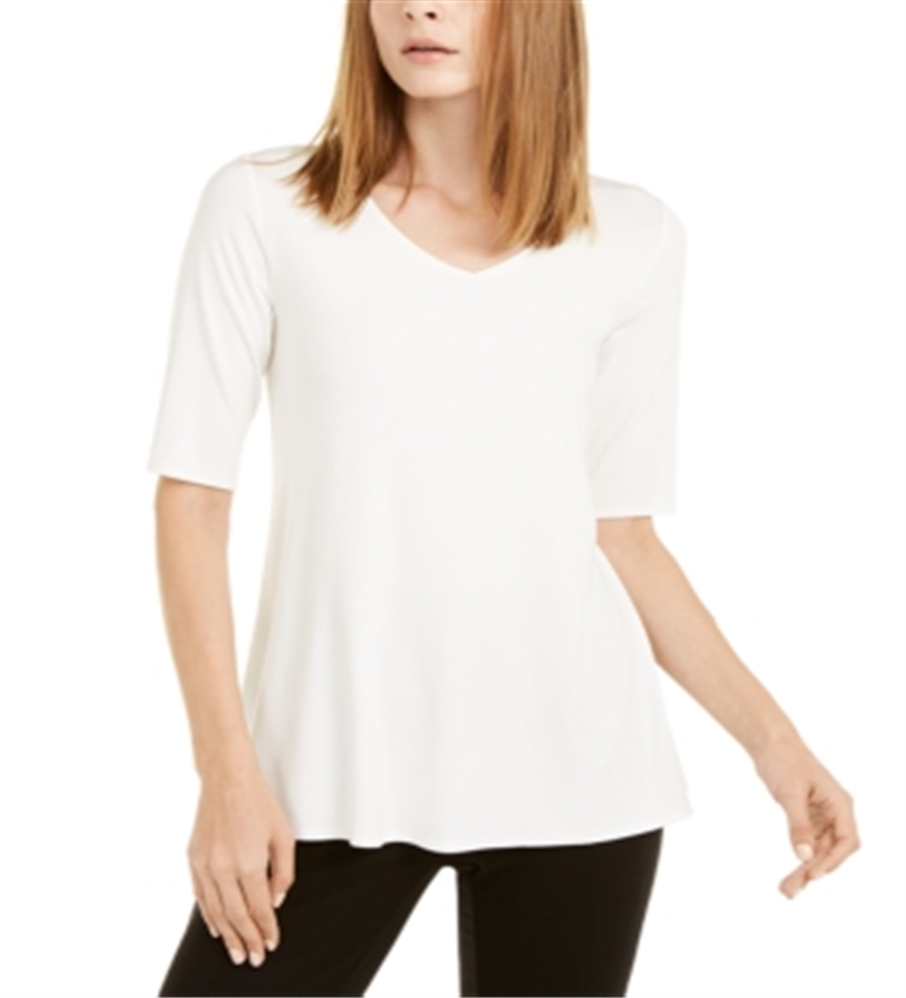 Túnica feminina Alfani com decote em V e alças finas, branca, tamanho X-S
