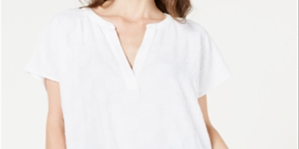 Blusa texturizada com decote em V feminina Alfani, branca, tamanho pequeno médio