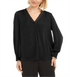 Blusa feminina Alfani com decote em V, preta, tamanho pequeno médio