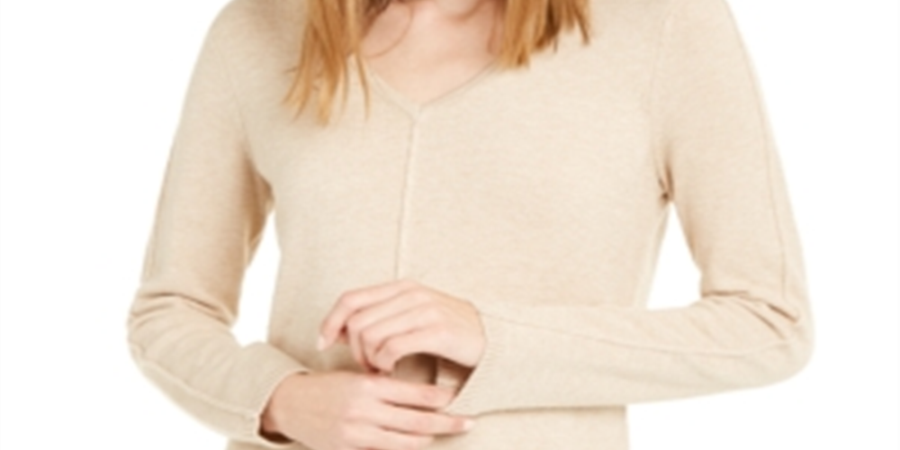 Alfani Suéter túnica feminino com decote em V marrom tamanho médio