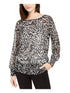Blusa feminina Alfani com estampa de zebra, manga comprida, gola redonda, tamanho pequeno, branca