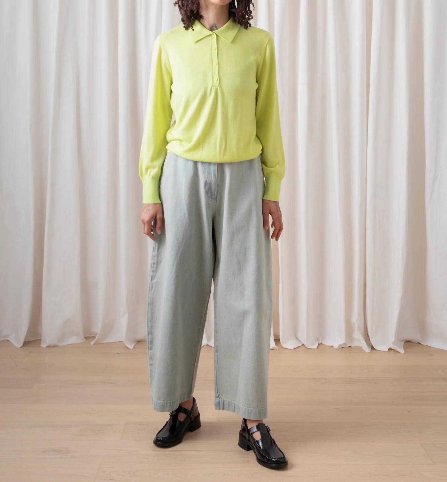 Elevate your travel wardrobe with the Long Sleeve Polo from Ali Golden, crafted in the eye-catching Light Highlighter color. This sophisticated jersey pullover sweater features a long sleeve design and is made from 100% Superfine Merino Wool, providing superior comfort and warmth. The classic collar and 4-button front placket add a polished touch to this solid-colored piece. Care instructions: Machine wash and tumble dry.