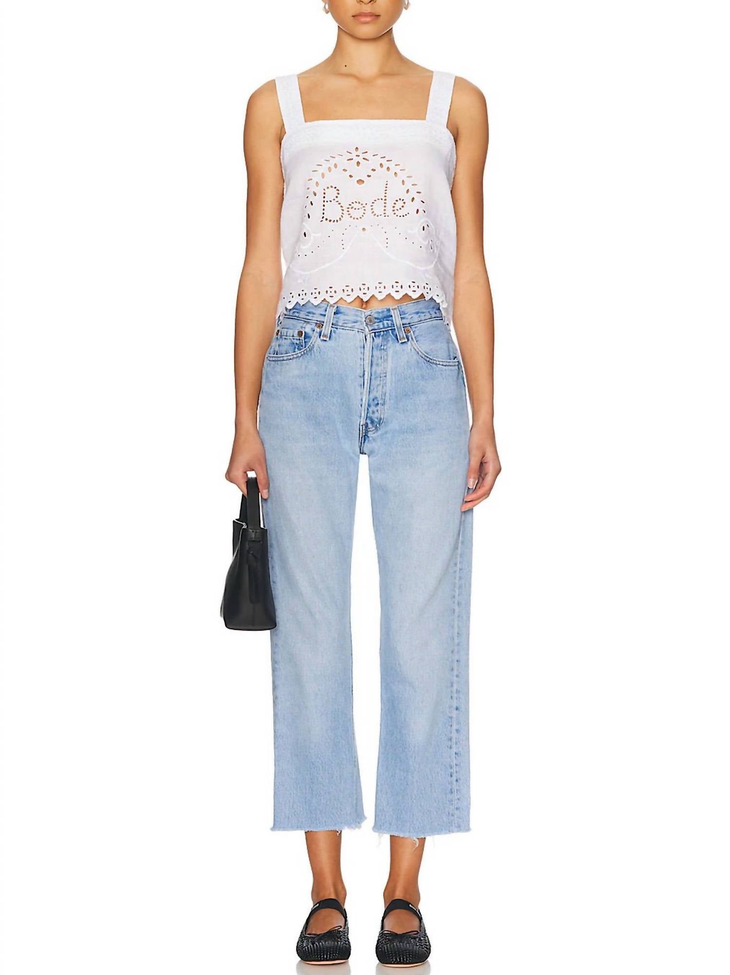 A Aligrace apresenta a calça jeans reta com bainha desfiada e desfiada, um modelo de cintura alta e perna reta, confeccionada em 100% algodão com lavagem leve. Originária dos EUA, esta calça jeans apresenta um fecho clássico com botões e um design de 5 bolsos, tornando-a estilosa e funcional. O tecido jeans rígido com bainha desfiada e desfiada reflete o compromisso da Aligrace com o uso de tecidos vintage recuperados, garantindo que cada peça seja única e única. Com 43 cm de comprimento no joelho e 38 cm de abertura na perna, o corte relaxado atende a mulheres de todos os tamanhos, mantendo o conforto e um visual atemporal. Cuidados: Lavar à máquina.