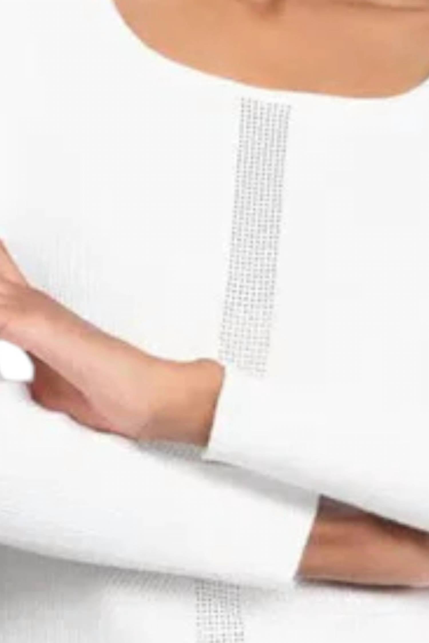 Experience the perfect blend of comfort and style with this trendy crew neck sweater, designed to effortlessly elevate your wardrobe. Pair it with your favorite denim and loafers for the perfect look. Elevate your everyday wardrobe with the Alison Sheri Scoop Neck Ribbed Sweater, a chic choice in Off White for any occasion. This textured piece features long sleeves, providing warmth and style in a minimalist design. Crafted from a viscose blend comprising 50% Viscose, 28% Polyester, and 22% Nylon, it boasts a flattering scoop neckline and a subtle shimmering detail for added glamour. The pull-on closure ensures comfort and ease. Care instructions: Hand wash.