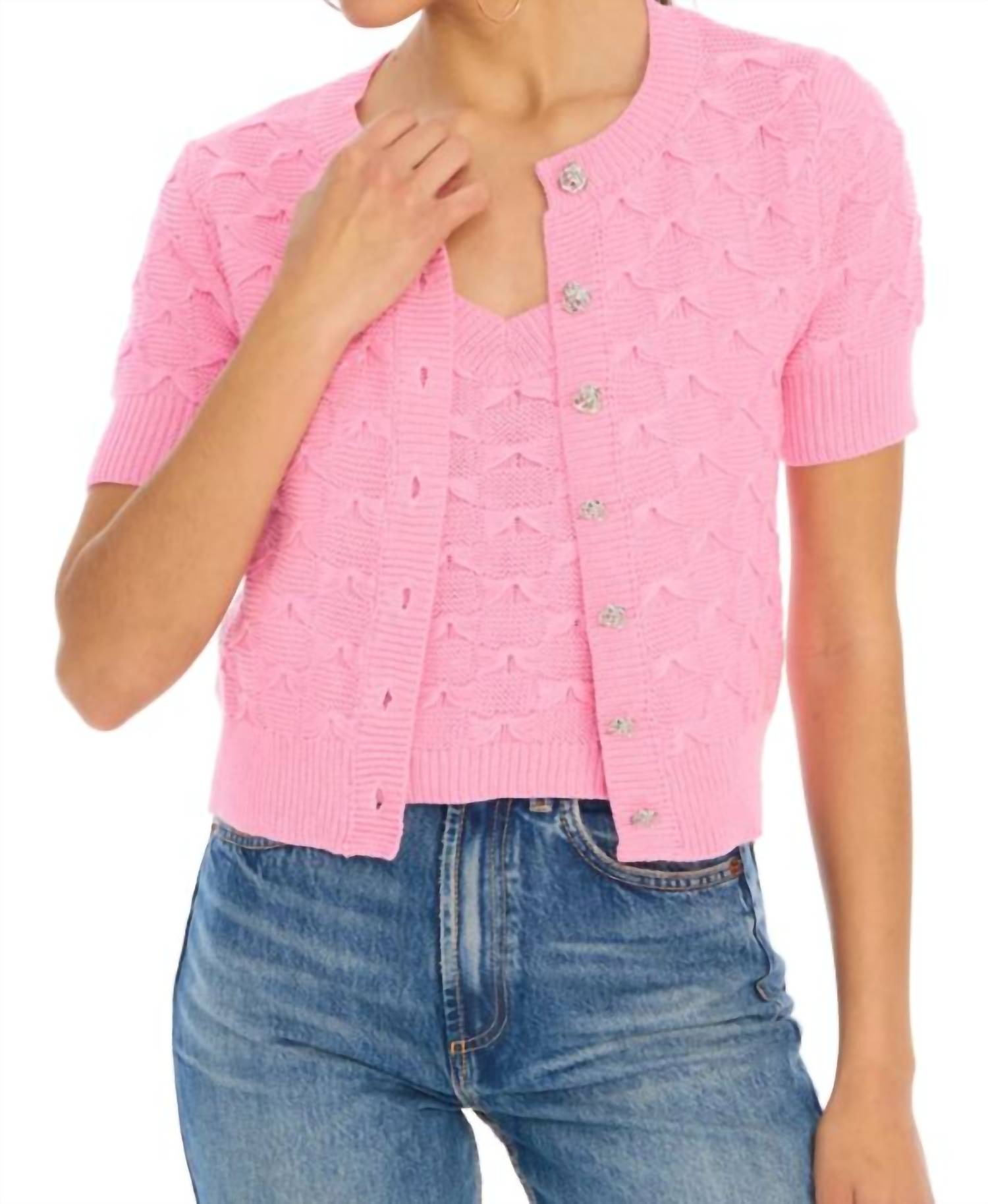 The Sweetheart Tank by Allison Avery is a must-have lightweight knit for all-year wear in a textured Candy Pink design. Crafted from 100% cotton, this sleeveless tank offers a slim fit with thick straps and a sweetheart neckline for a flattering look. Perfect for pairing with the matching cardigan and classic denim, this pull-on style is easy to integrate into your vacation or summer wardrobe. The tank is designed for women and does not feature pockets.