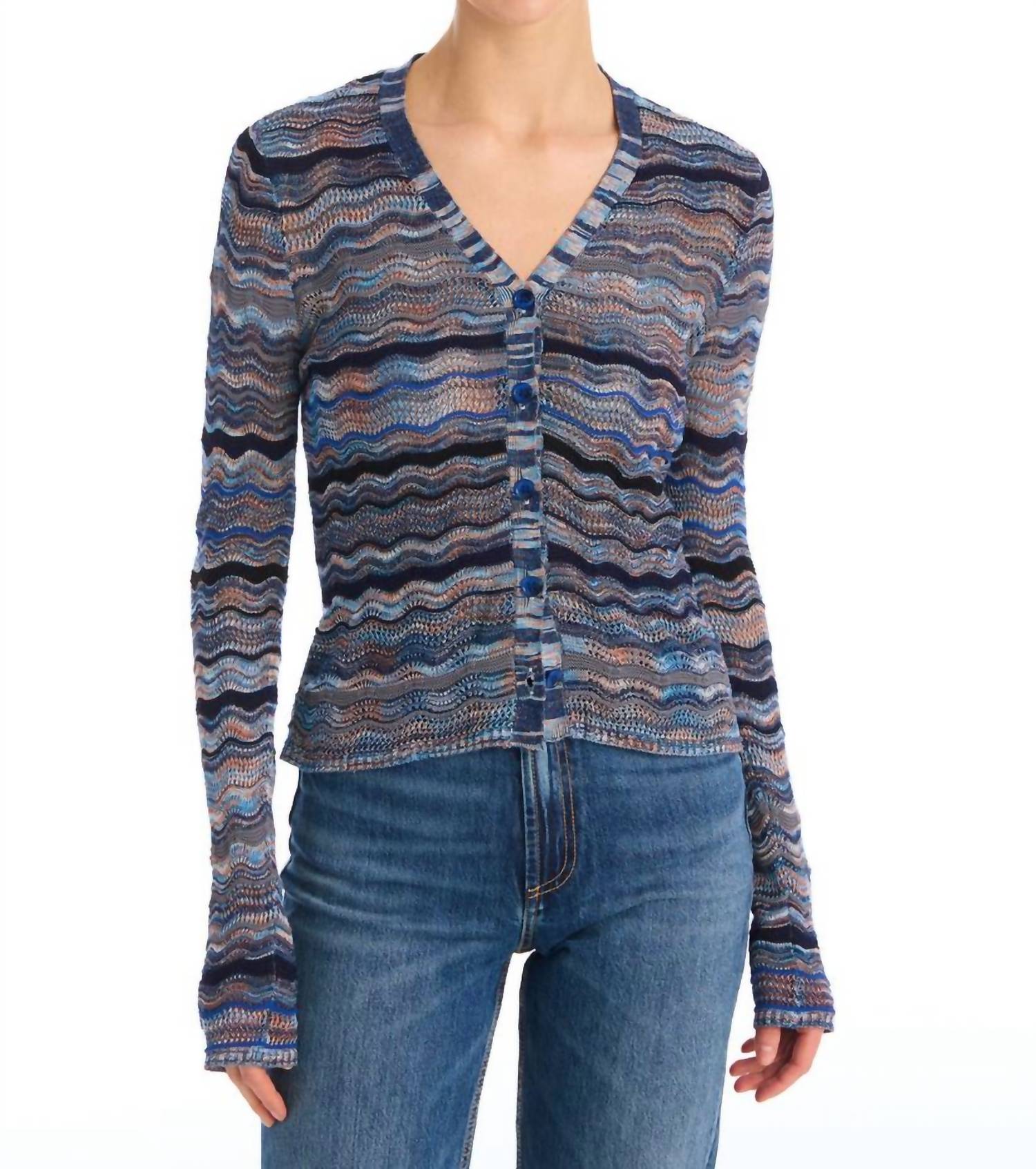 Throw this adorable cardigan over any cami or tank top. Meet the Colleen Cardigan by ALLISON NEW YORK, a chic choice in navy space dye that captures the essence of fall fashion. Expertly crafted with long sleeves and a slender fit, this cardigan is made from 100% rayon, offering a slightly sheer, lightweight feel. Sitting at a garment length of 21.5 inches, it features a V-neckline leading to a button closure down the center front. Designed with attention to detail, this stylish piece requires dry clean only care.