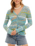 The Colleen Cardigan is crafted from our favorite viscose spacedye yarns, inspired by oceanic blue hues. This lightweight, semi-sheer cardigan features a deep V neckline with pearlized buttons and tight long sleeves. It offers a fitted, slim silhouette with a slight stretch. Fabric: 85% Viscose, 15% Polyester. Runs true to size. Dry clean only.