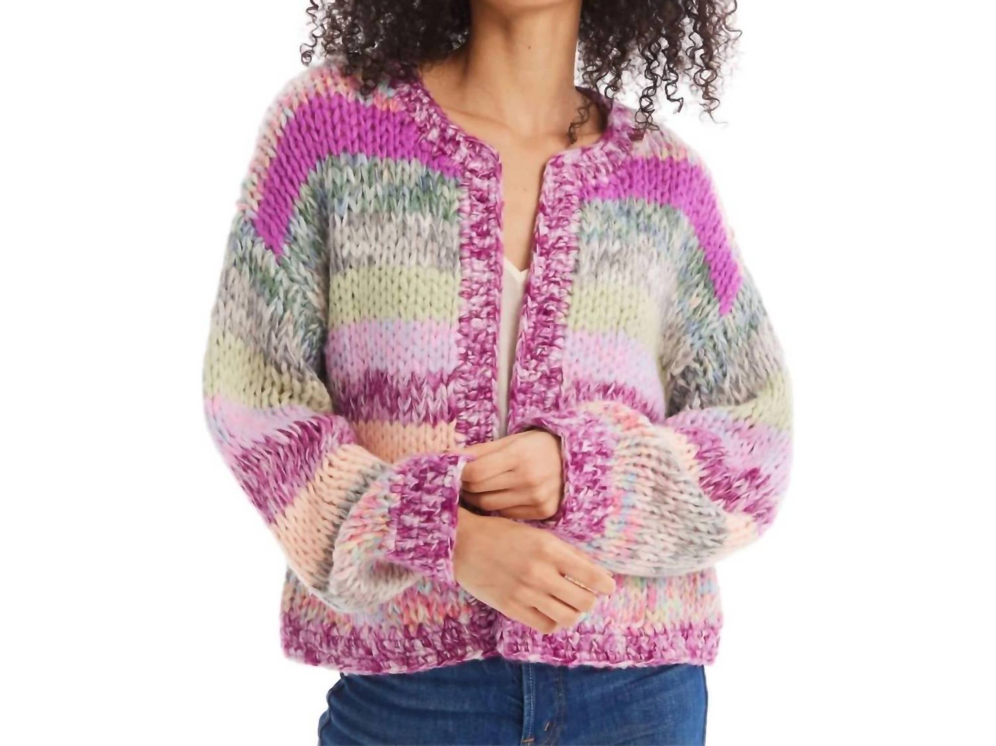 Throw this adorable cardigan over any cami or tank top. Introducing the Crop Jodie Cardigan by ALLISON NEW YORK, a chic addition to your winter wardrobe available in Multi Pastel. This piece features long, billowing sleeves and a slouchy boxy fit, perfect for a relaxed yet stylish look. With a fashionable cropped length of 19.75 inches and no closure, it makes an ideal layering piece for any evening event. Crafted from 100% Acrylic, care is simple with a dry clean only recommendation, adding a touch of quiet luxury to your collection.