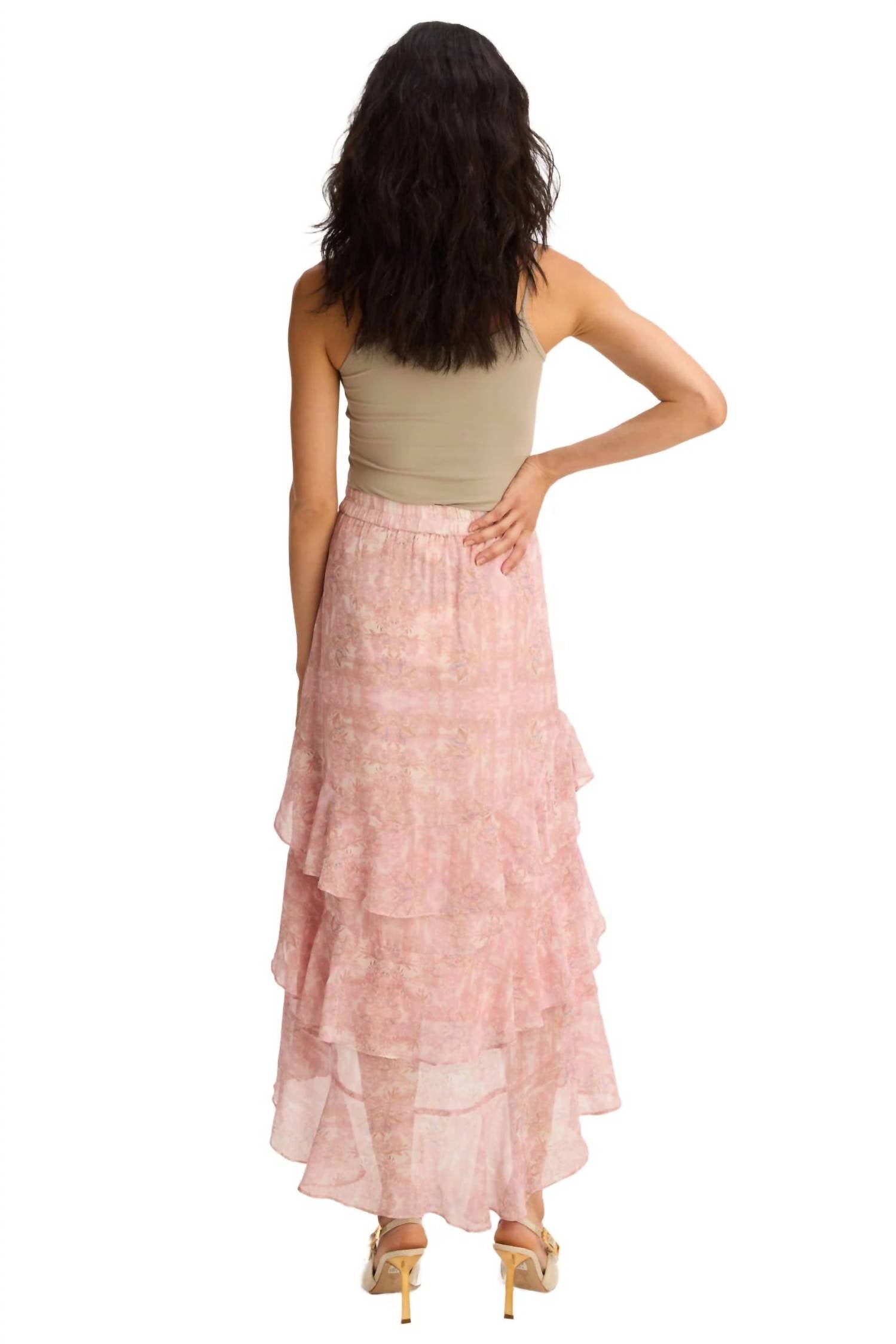 Introducing the Ella Midi Skirt by ALLISON NEW YORK, an elegant choice for your spring dinner parties. This floral skirt in blush features a pull-on closure for easy wear. Fabrication is 100% Polyester Chiffon with a lining of 100% Rayon, ensuring comfort and style. Care: Hand wash and lay flat to dry, or opt for dry cleaning for the best maintenance.