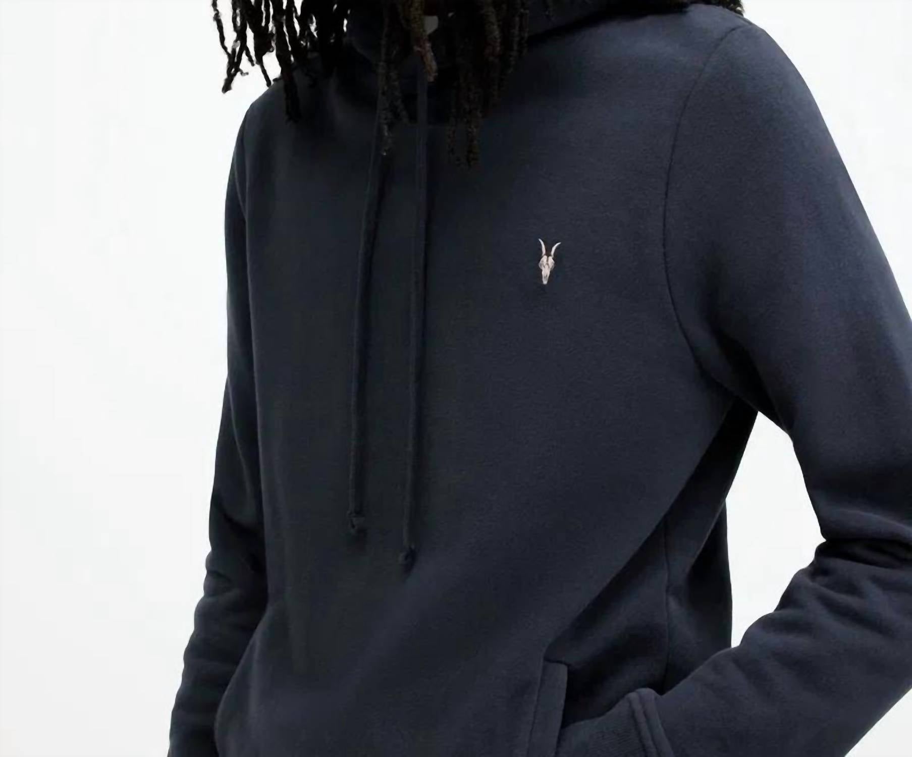 The Raven Contrast Ramskull Pullover by AllSaints in Cadet Blue offers the perfect blend of comfort and style, designed for those relaxed, off-duty moments. This hoodie features long sleeves and is made from 100% organic cotton, guaranteeing an extra soft feel. Originating from Turkey, it comes with a distinctive Ramskull embroidered on the chest and has a convenient pull-on closure for easy wear. For care, machine wash and line dry to maintain its quality and longevity.