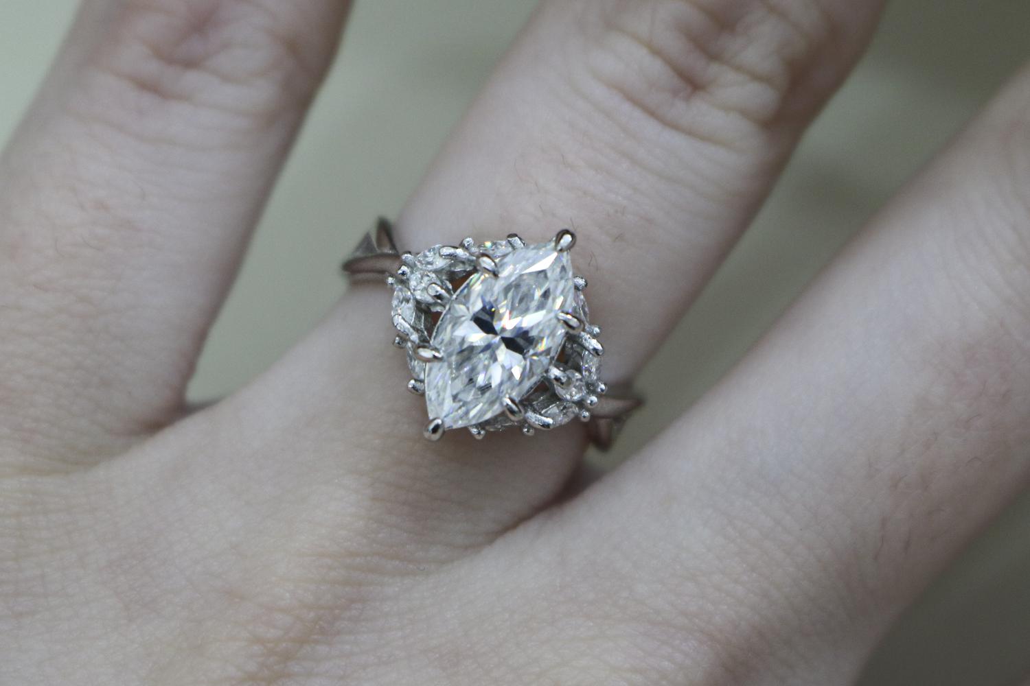 Allyanna Gifts - Women's Sterling Silver 2.0ct Marquise Moissanite Cluster Ring