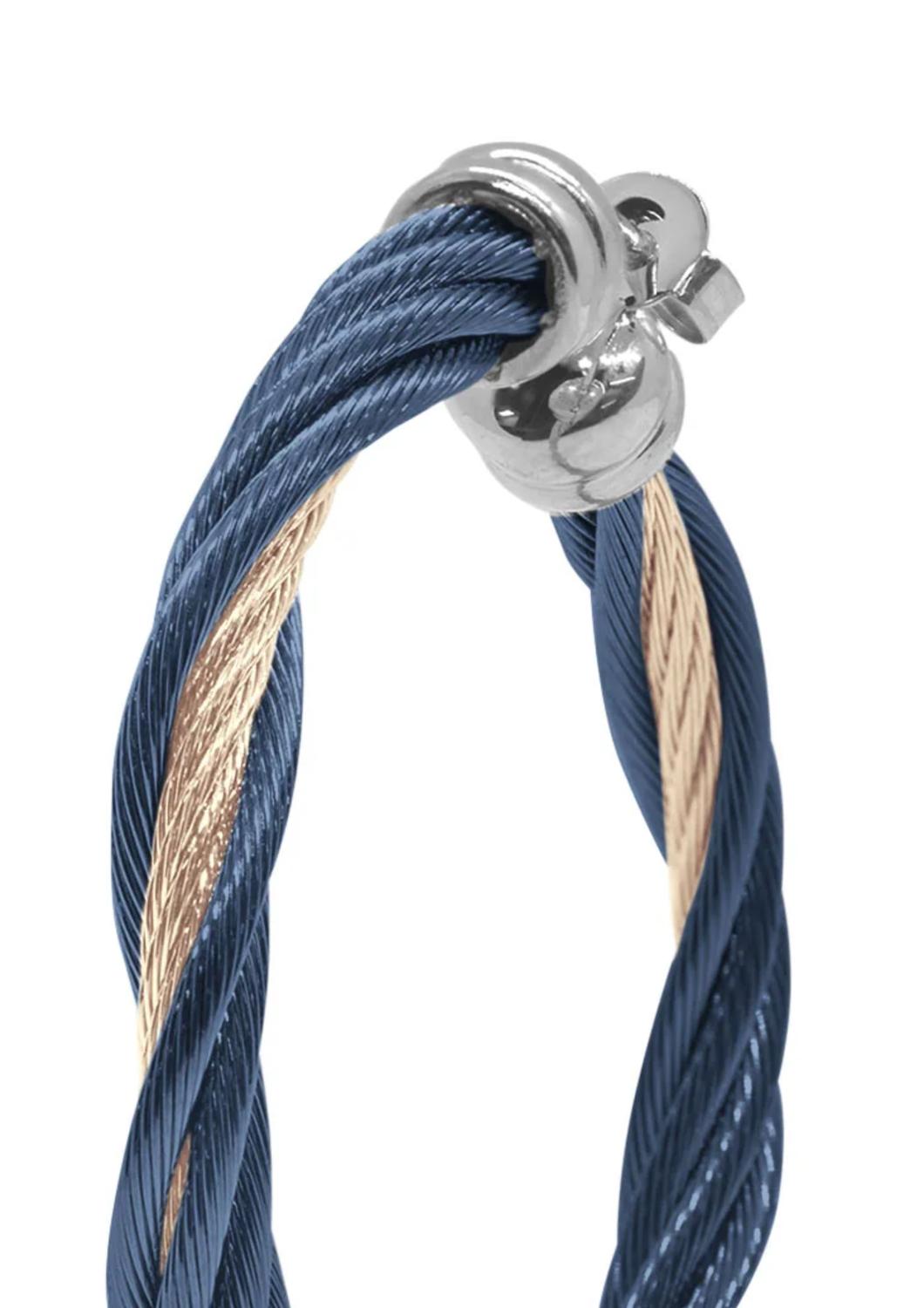 Elevate your style with the Modern Twist 1.5" Hoop Earrings by ALOR, a stunning combination of Blueberry and Carnation hues. These earrings are crafted from luxurious 18kt white gold with stainless steel cables and feature 18kt gold posts complemented by secure butterfly backs. Each hoop measures 35mm in diameter, making a bold statement while remaining lightweight. Imported for a touch of sophistication to your accessory collection.