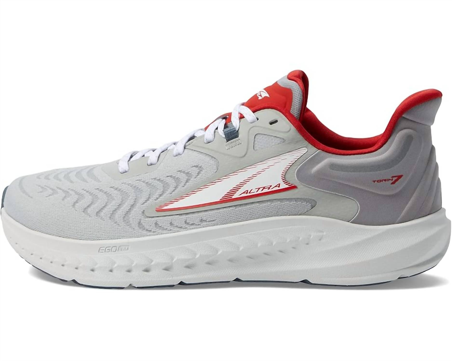 Dê aos seus pés um conforto elevado com os tênis Altra® Men's Torin 7, que apresentam plataformas Balanced Cushioning™, colarinhos de calcanhar moldados e fecho de cadarço. Cabedal em malha projetada. Forro de nylon. Palmilha de poliuretano. As plataformas Balanced Cushioning™ posicionam seus calcanhares e antepés. O conforto FootShape™ dá mais espaço aos seus pés. Fecho de cadarço. Colarinhos de calcanhar moldados. Design com bico redondo. Espuma da entressola EGO™ MAX. Solado de borracha FootPod.