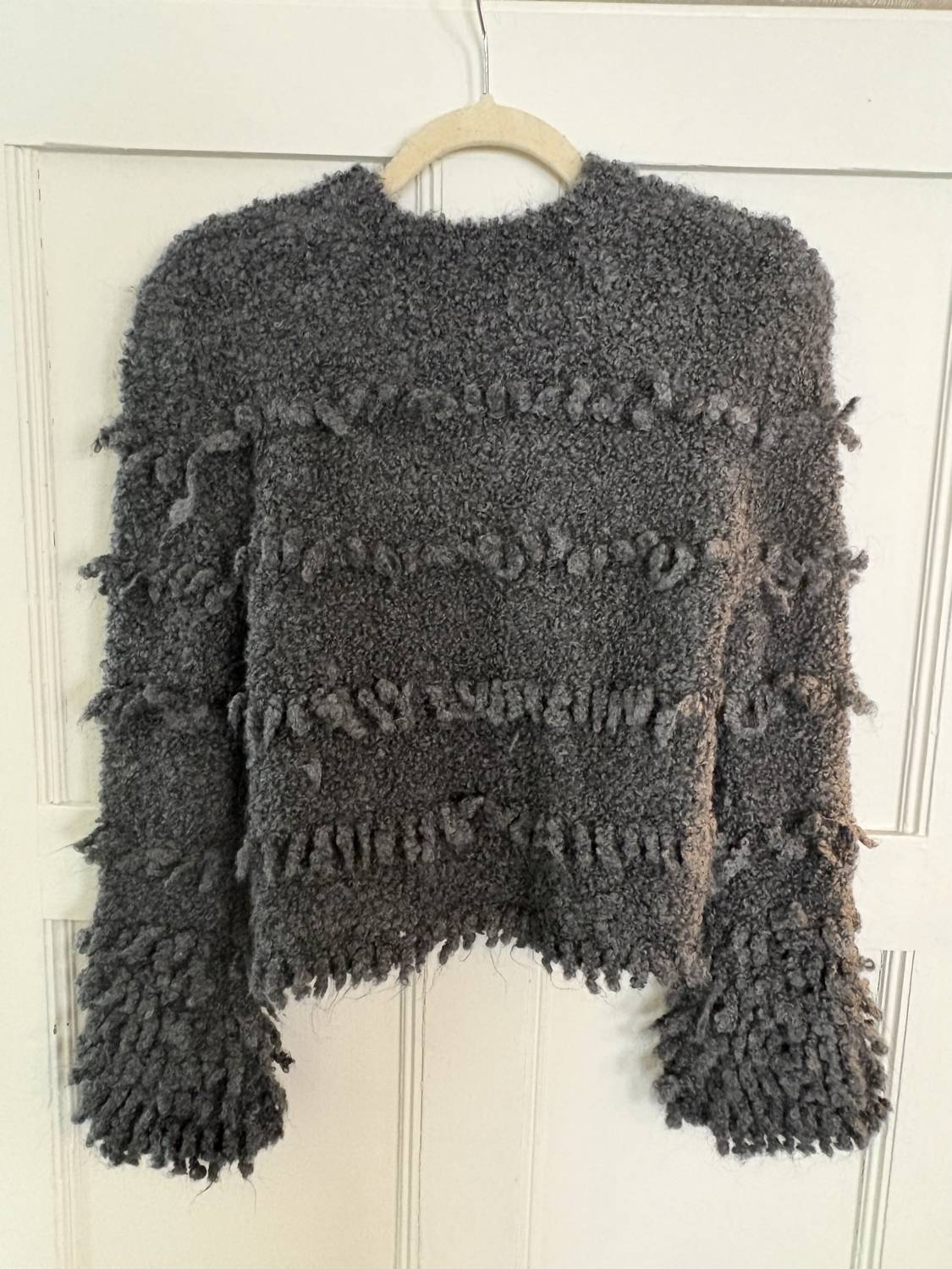Discover the ALYSI Women's Maglia Fringes Tricot Girocoll, a chic long-sleeve tee perfect for your vacation wardrobe in the subtle shade of anthracite. Made from durable Acrylic, this textured design offers a touch of monochrome elegance with a classic crewneck. Designed with a convenient pull-on closure, this piece is ideal for easy wear during the spring season. Care: Dry clean only.
