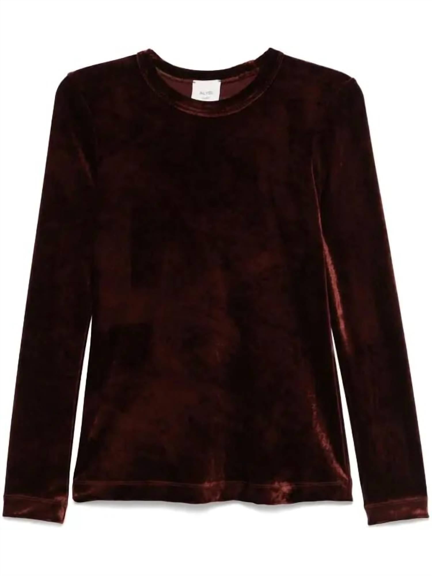 Embrace chic minimalism with the Women's Maglia Velvet Feel Scollata by ALYSI, crafted for style and comfort. Featuring long sleeves and a crewneck design, this tee in a solid choco hue is perfect for any vacation ensemble. Made from a luxurious Viscose Blend, it offers a smooth, velvet feel against the skin. The easy pull-on closure adds convenience, while hand wash only care ensures longevity and maintains the fabric's softness.